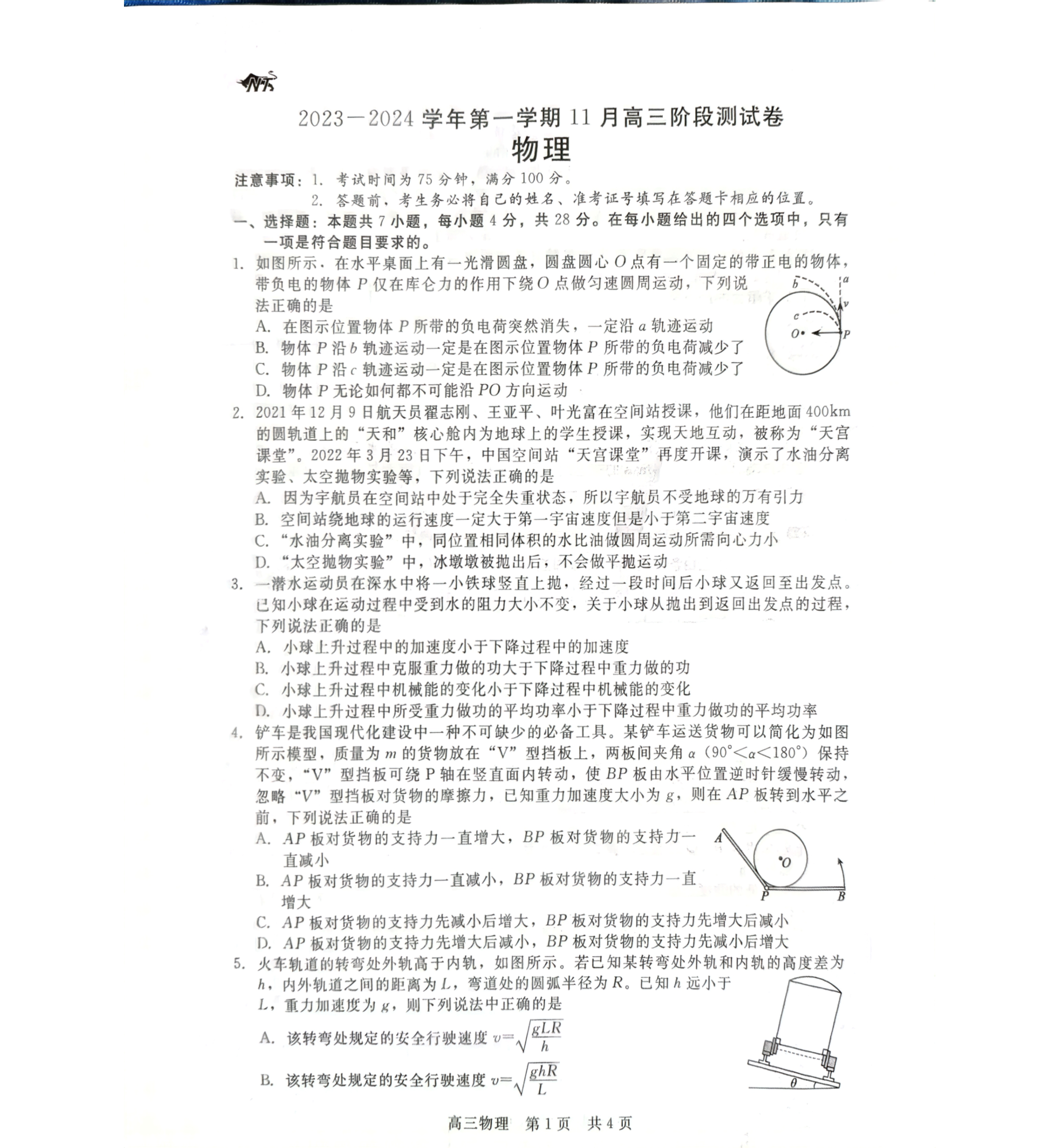 河北省新时代NT教育2023-2024学年第一学期11月高三阶段测试卷 物理