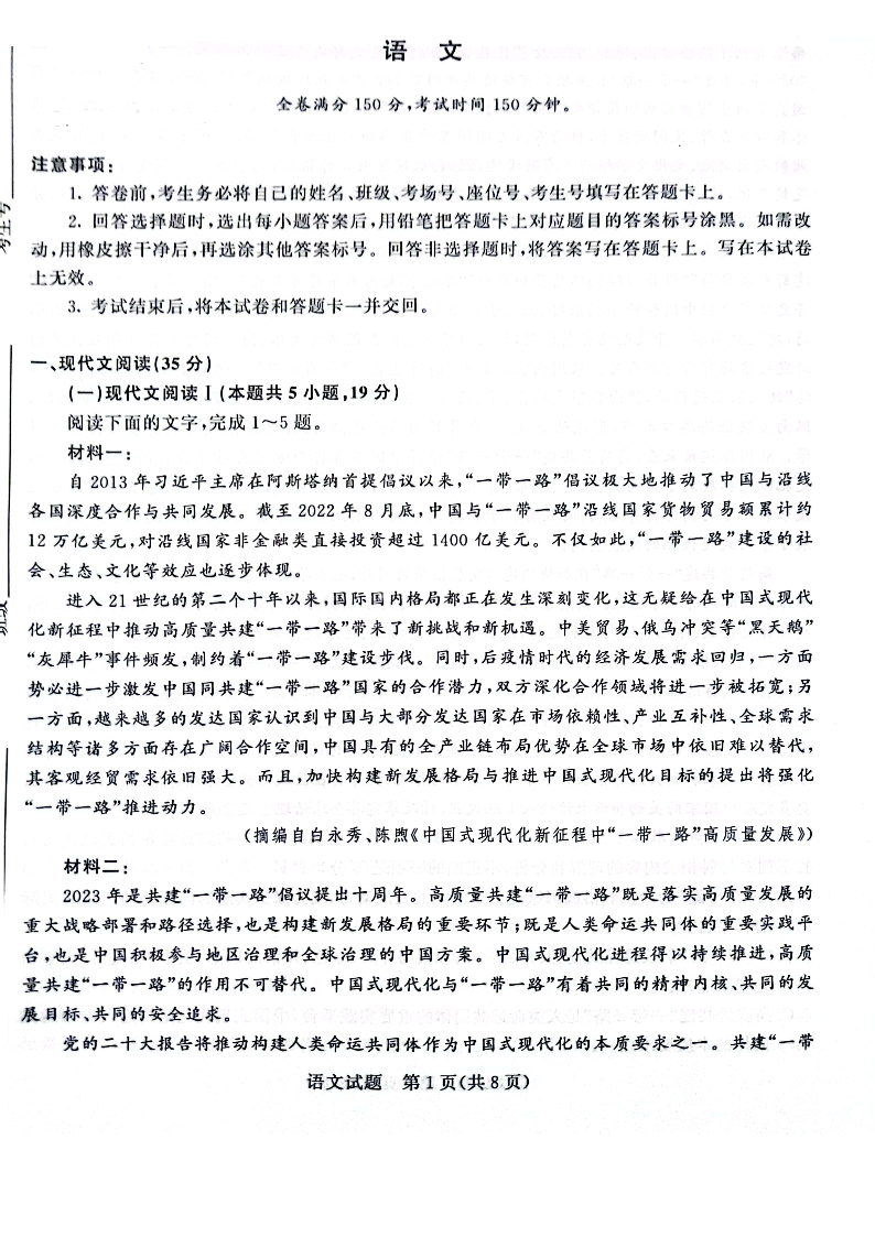 河南省周口市项城市期中联考2023-2024学年高三上学期11月期中试卷 语文
