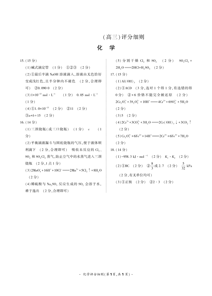 11月高三联考化学评分细则