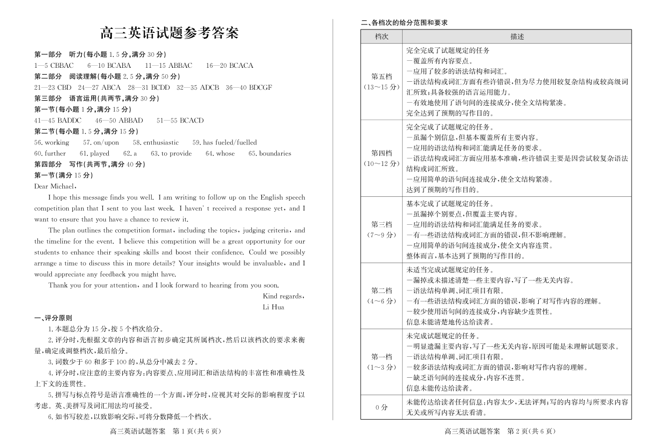 【山东卷】山东省德州市2024.11高三年级期中统一检测英语答案