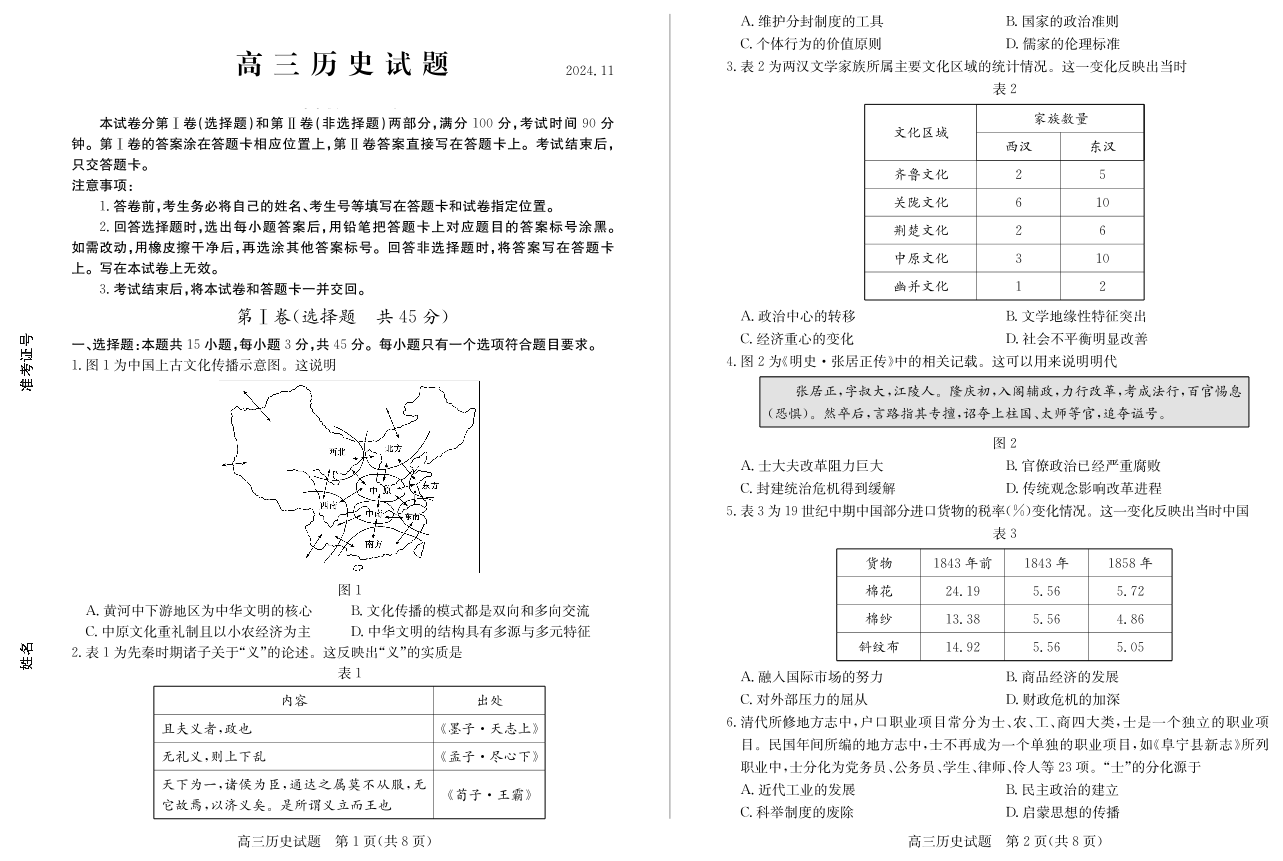 【山东卷】山东省德州市2024.11高三年级期中统一检测历史