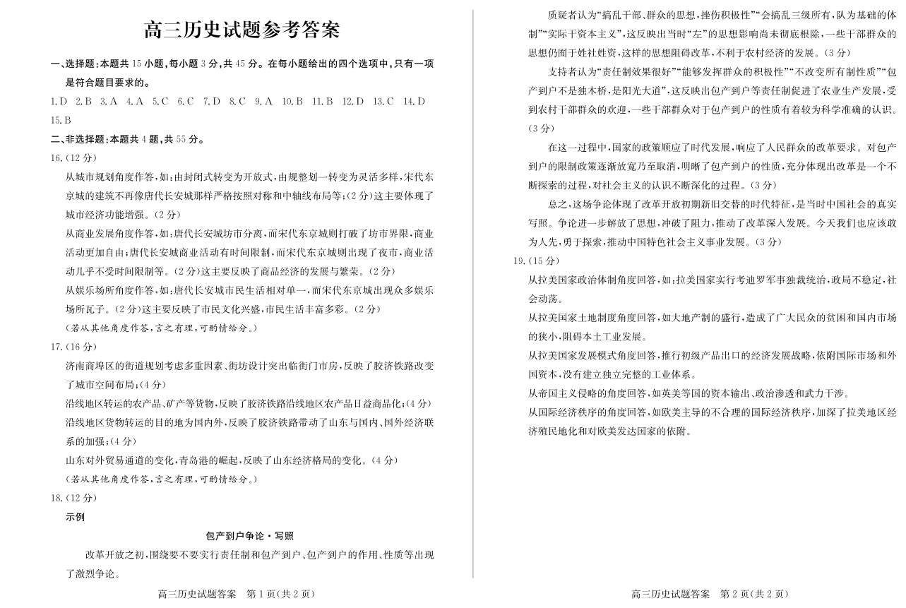 【山东卷】山东省德州市2024.11高三年级期中统一检测历史答案