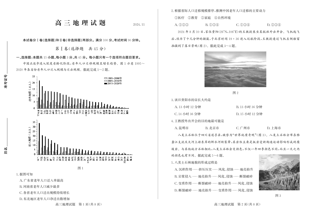 【山东卷】山东省德州市2024.11高三年级期中统一检测地理