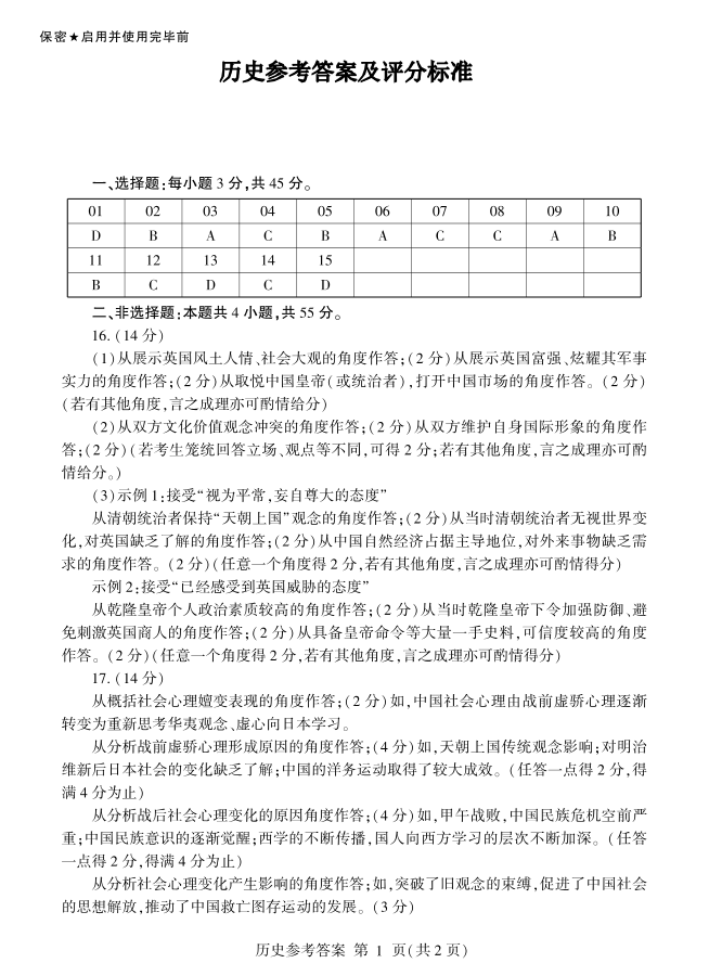 临沂市2024.11高三年级期中教学质量检测考+历史答案