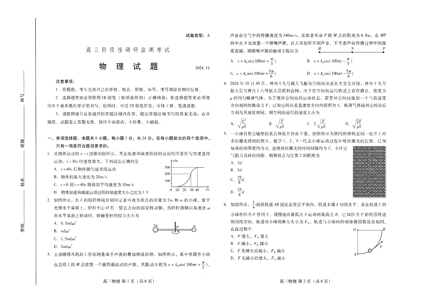 山东省潍坊市2024.11高三阶段性调研监测考试物理