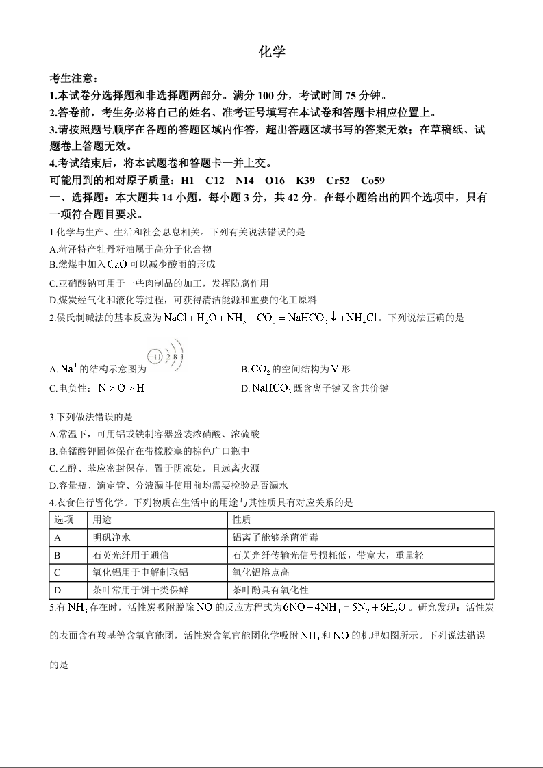 河北省沧州市三校联考2025届高三上学期11月期中考试化学+答案