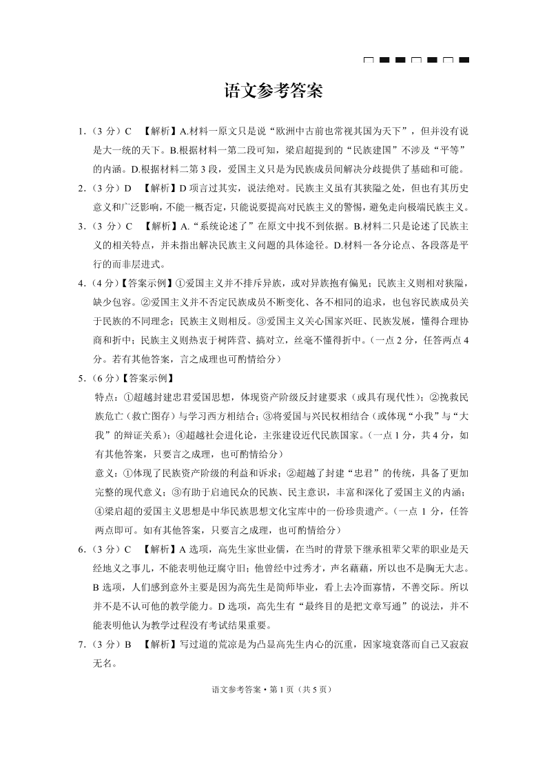 重庆巴蜀中学月考2025届高三适应性月考卷(三)语文答案