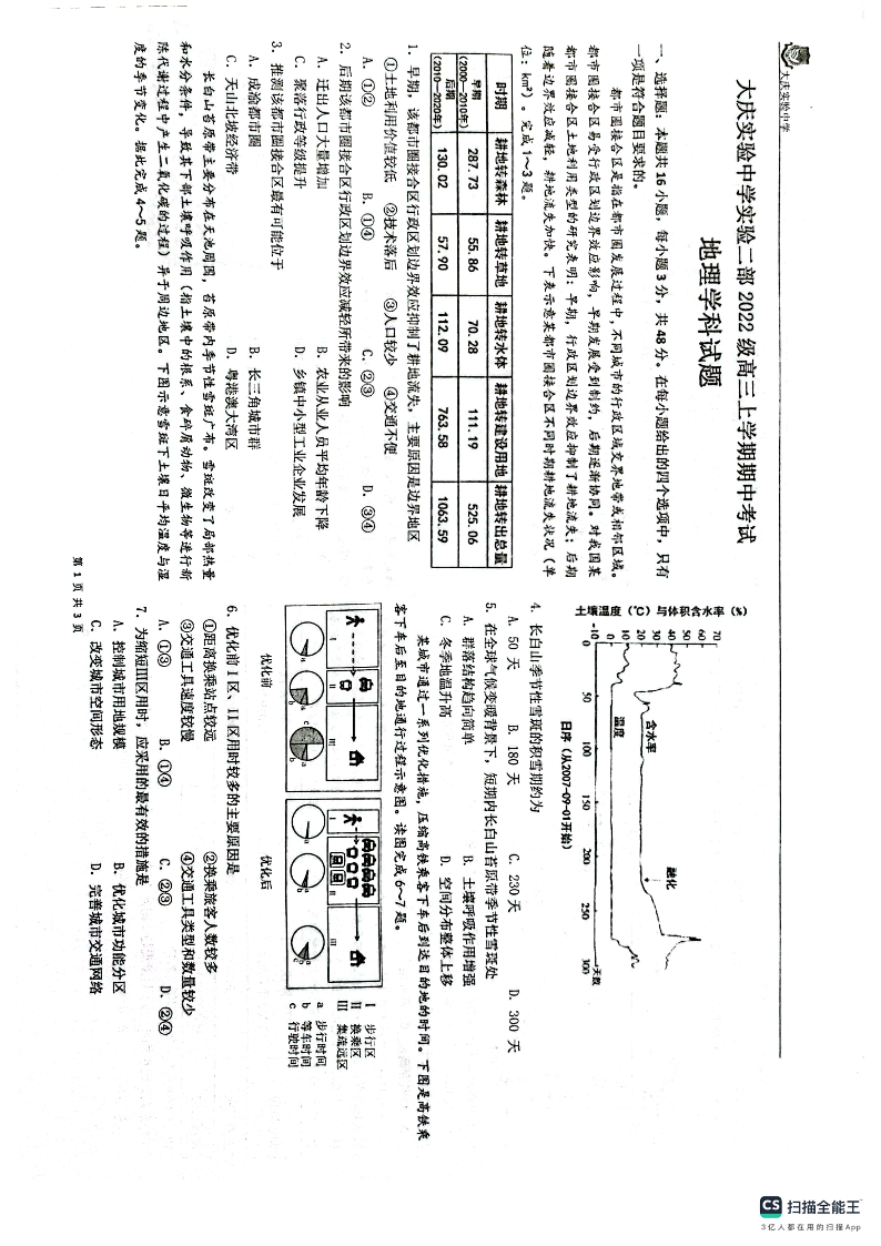 黑龙江省大庆市实验中学实验二部2025届高三上学期期中考试地理