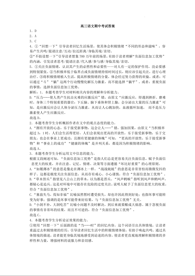 江西省南昌市第三中学2025届高三上学期11月期中考试语文答案