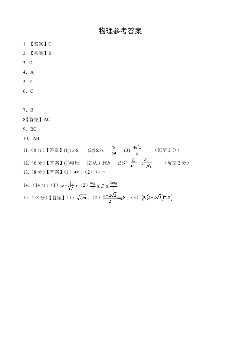 河北省部分学校2024-2025学年高三上学期第二次质检物理答案