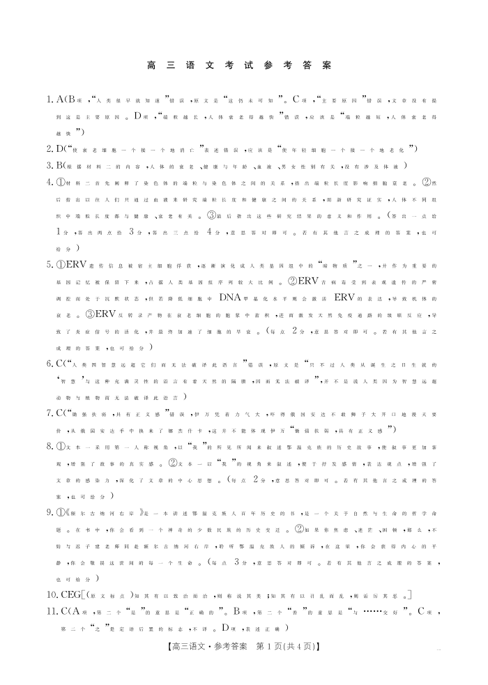 湖北省部分高中2025届高三上学期10月联考语文答案