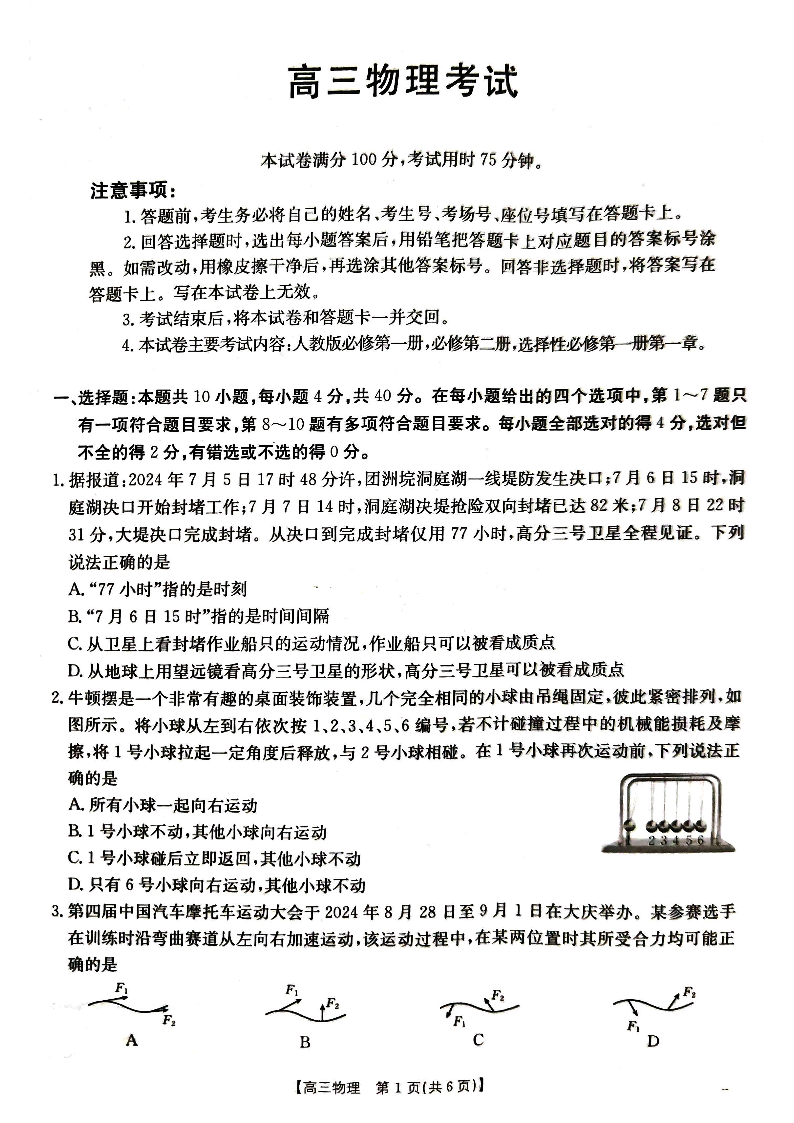 湖北省部分高中2025届高三上学期10月联考物理试题