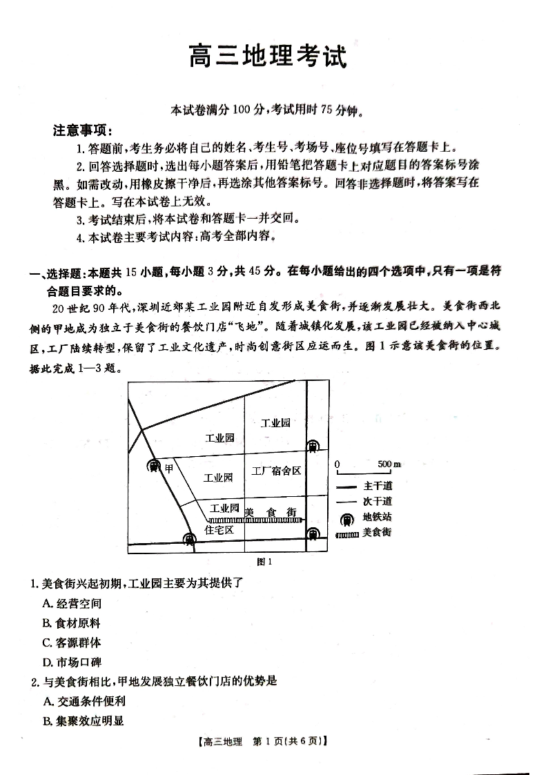 湖北省部分高中2025届高三上学期10月联考地理试题