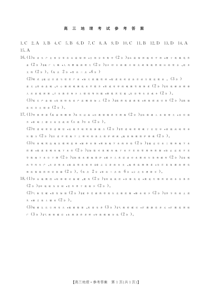 湖北省部分高中2025届高三上学期10月联考地理答案