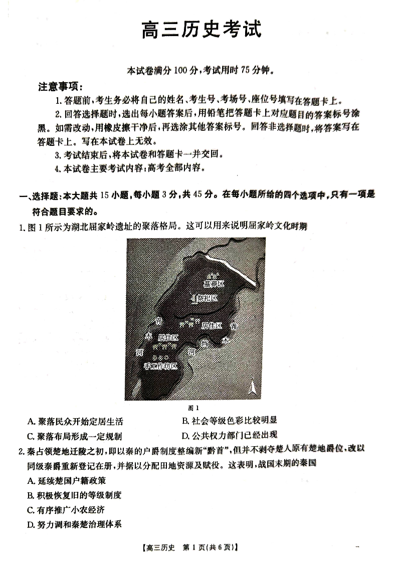 湖北省部分高中2025届高三上学期10月联考历史试题