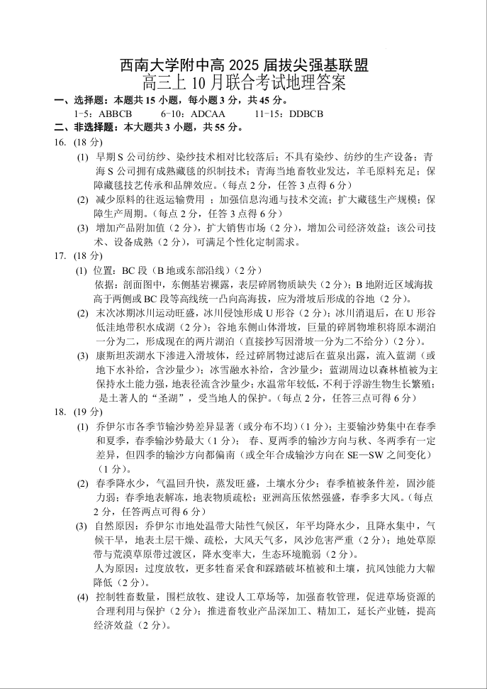 重庆市高2025届拔尖强基联盟高三上10月联合考试地理答案