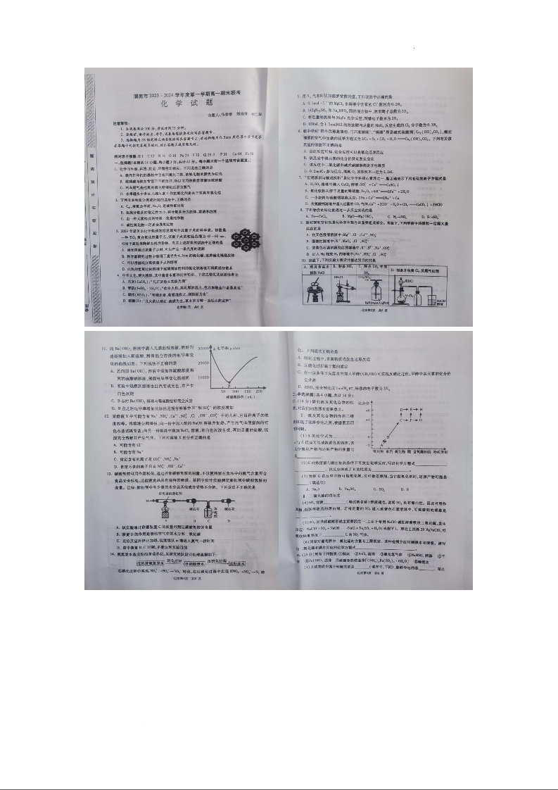 陕西省渭南市2023-2024学年高一上学期期末考试化学