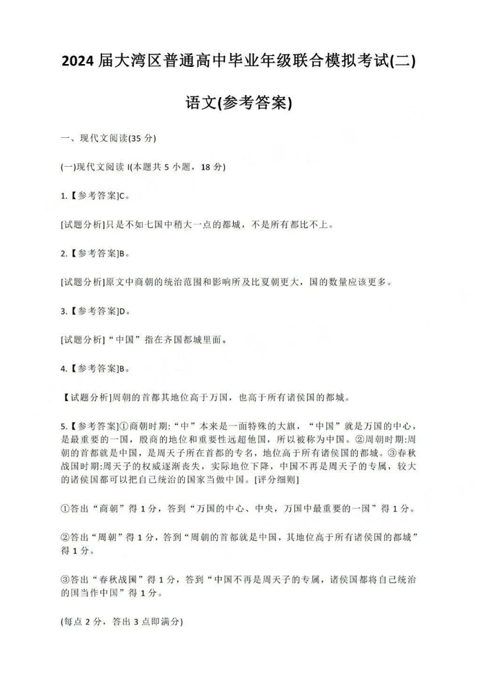 广东省大湾区2024届普通高中毕业年级联合模拟考试(二)语文答案