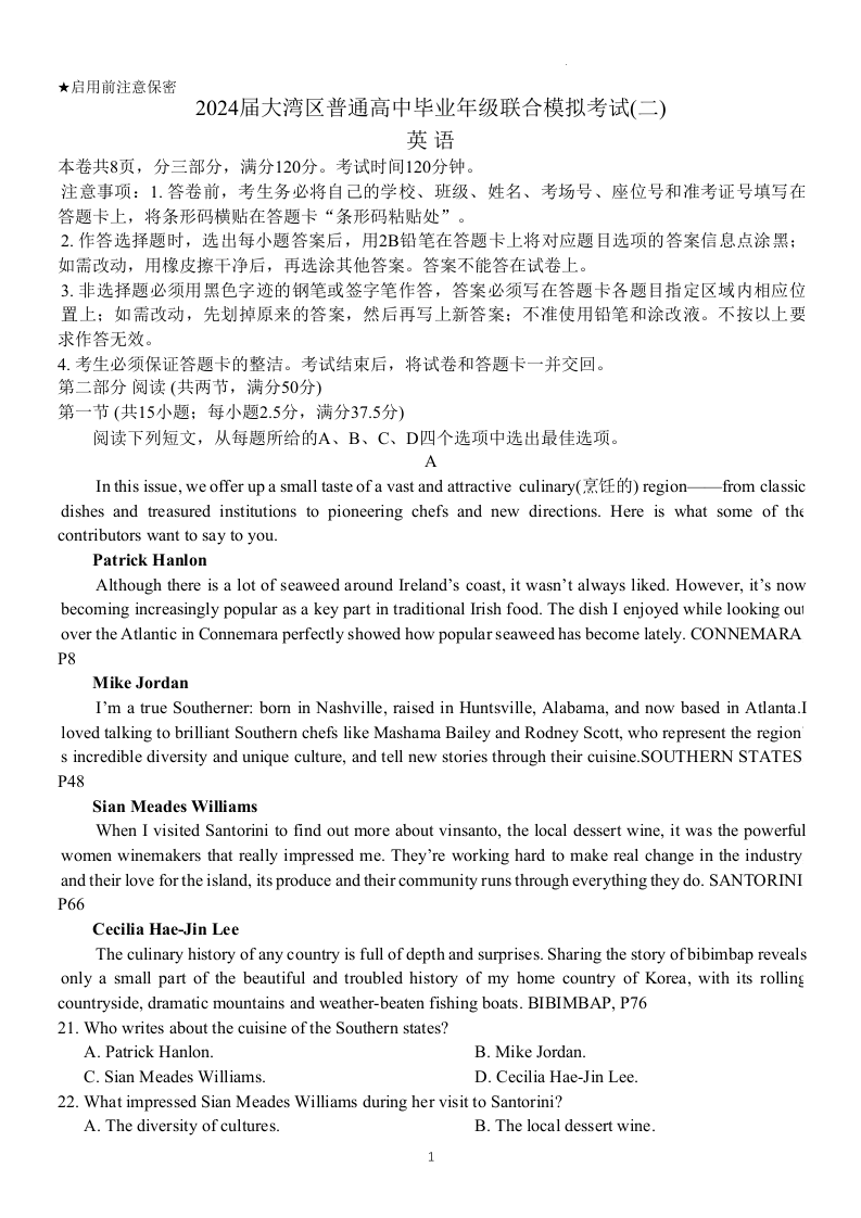 广东省大湾区2024届普通高中毕业年级联合模拟考试(二)英语+答案