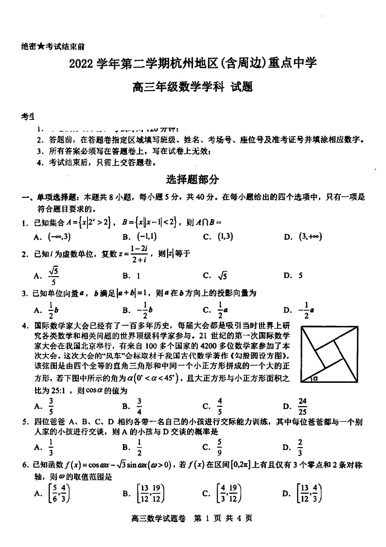高三数学+答案--浙江省杭州(含周边)重点中学2023届高三下学期3月联考