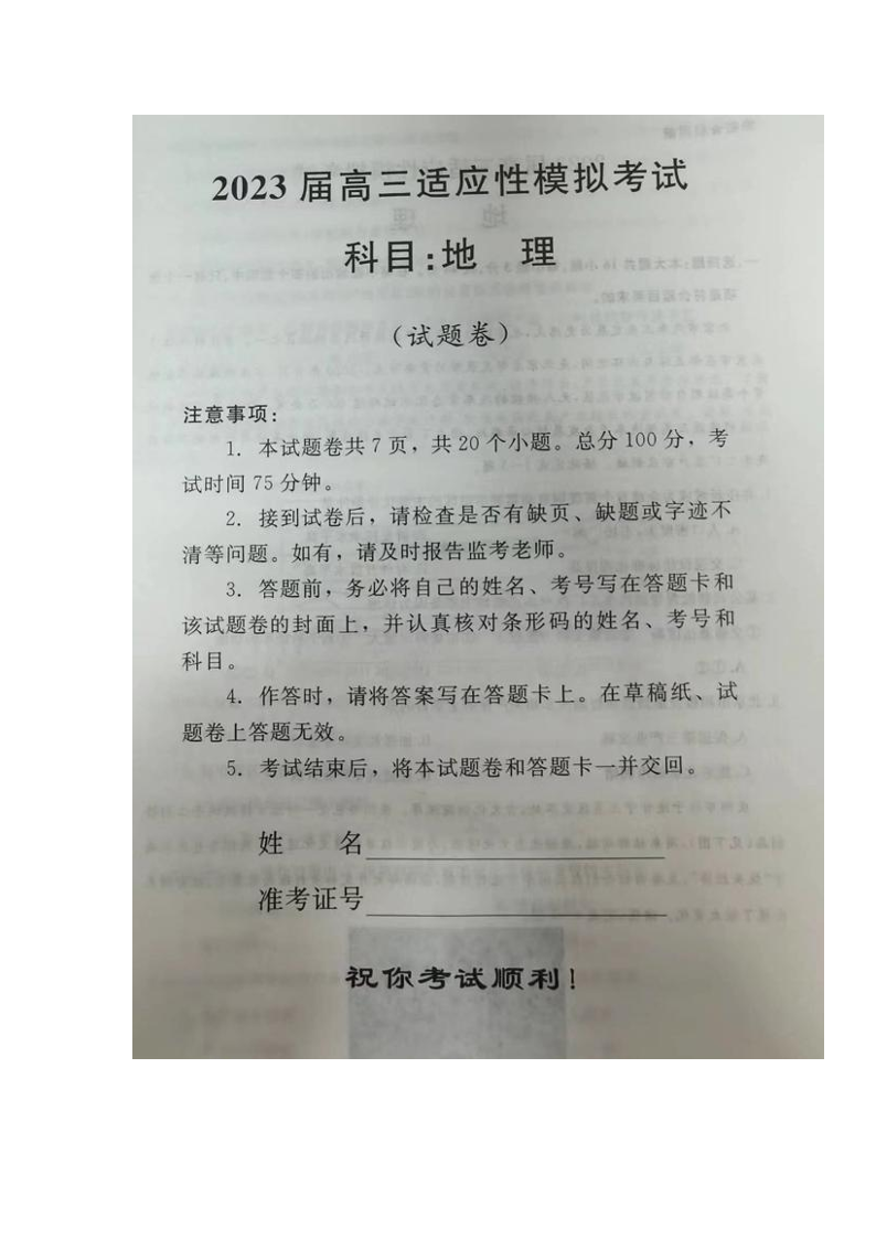 高三地理--湖南省郴州市2023届高三适应性模拟考试(郴州三模)