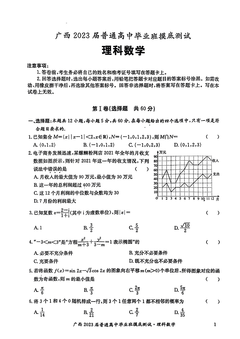 高三理科数学+答案--广西普通高中毕业班2023届高三上学期摸底测试