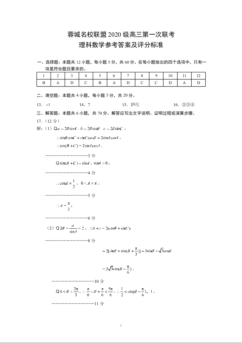 高三理科数学答案--四川省成都市蓉城名校联盟2022-2023学年高三上学期第一次联考