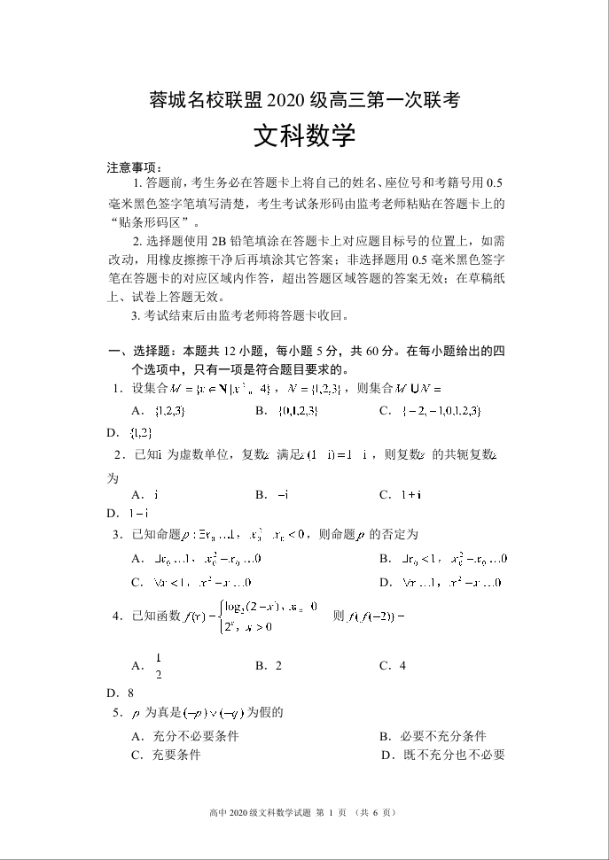 高三文数--四川省成都市蓉城名校联盟2022-2023学年高三上学期第一次联考