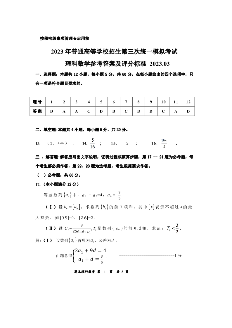 高三理数答案--内蒙古赤峰市高三第三次统一考试3.15-16