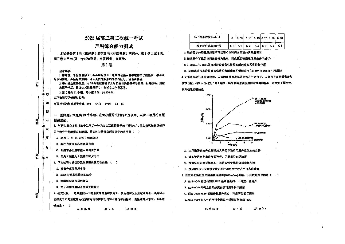 高三理综--内蒙古赤峰市高三第三次统一考试3.15-16
