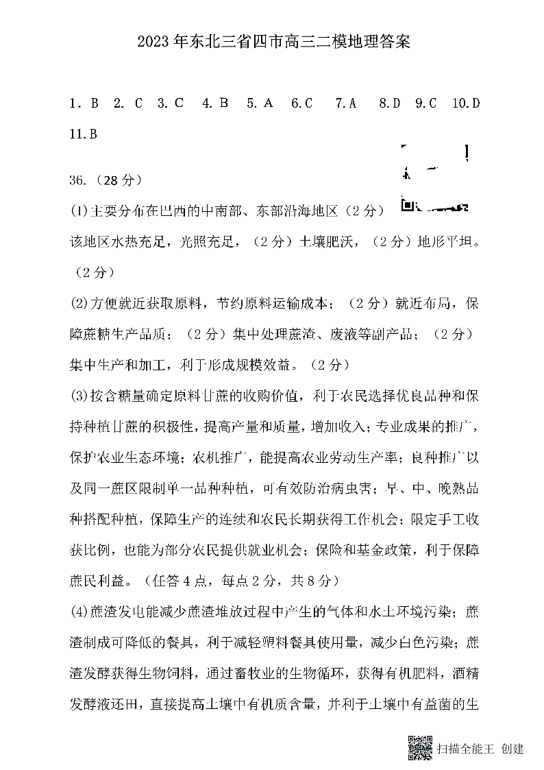 高三文综答案--东北三省四市教研联合体2023届高考模拟考试(二)