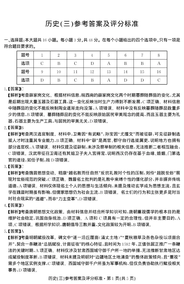 高三历史答案--云南省名校联盟2026届高三上学期第三次联考