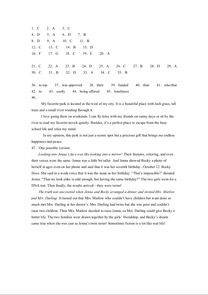 高二英语答案--宁夏回族自治区石嘴山市第一中学2025-2026学年高二上学期12月月考