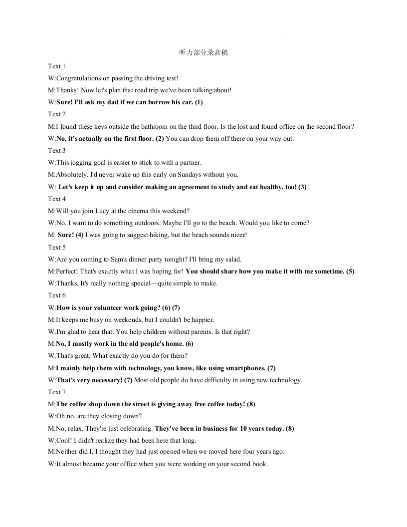 高一英语听力原文--浙江省强基联盟2025-2026学年高一上学期12月月考