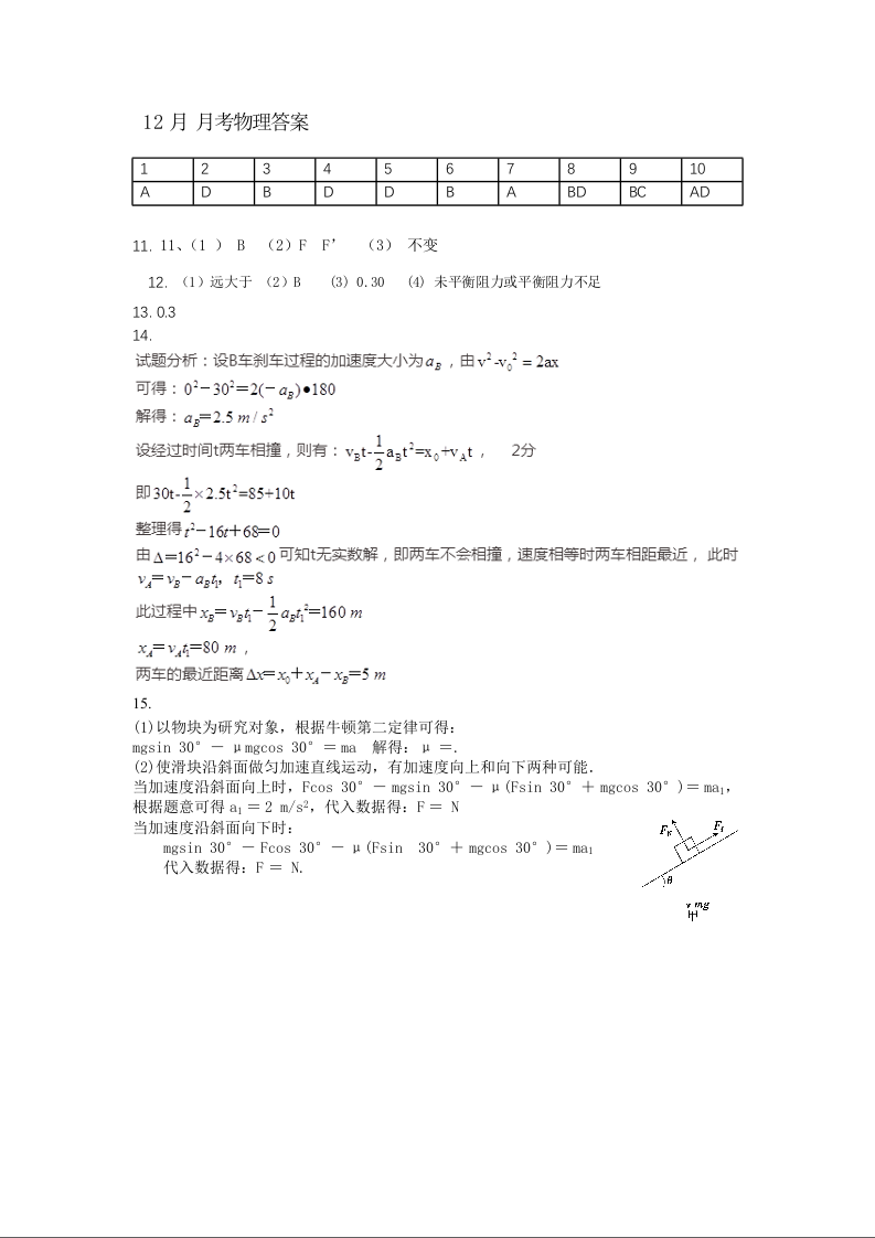 高一物理答案--黑龙江省齐齐哈尔市第八中学校2025-2026学年高一上学期12月月考
