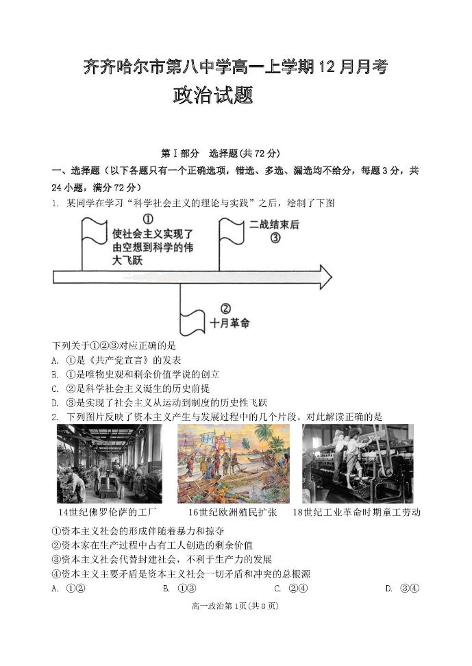 高一政治--黑龙江省齐齐哈尔市第八中学校2025-2026学年高一上学期12月月考