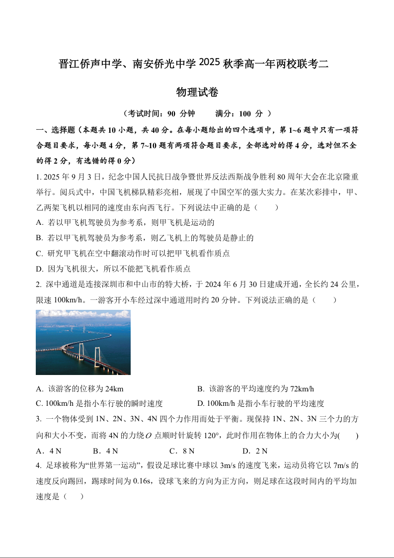 高三物理+答案--高三英语+答案--福建省泉州市两校2025-2026学年高一上学期12月联考二