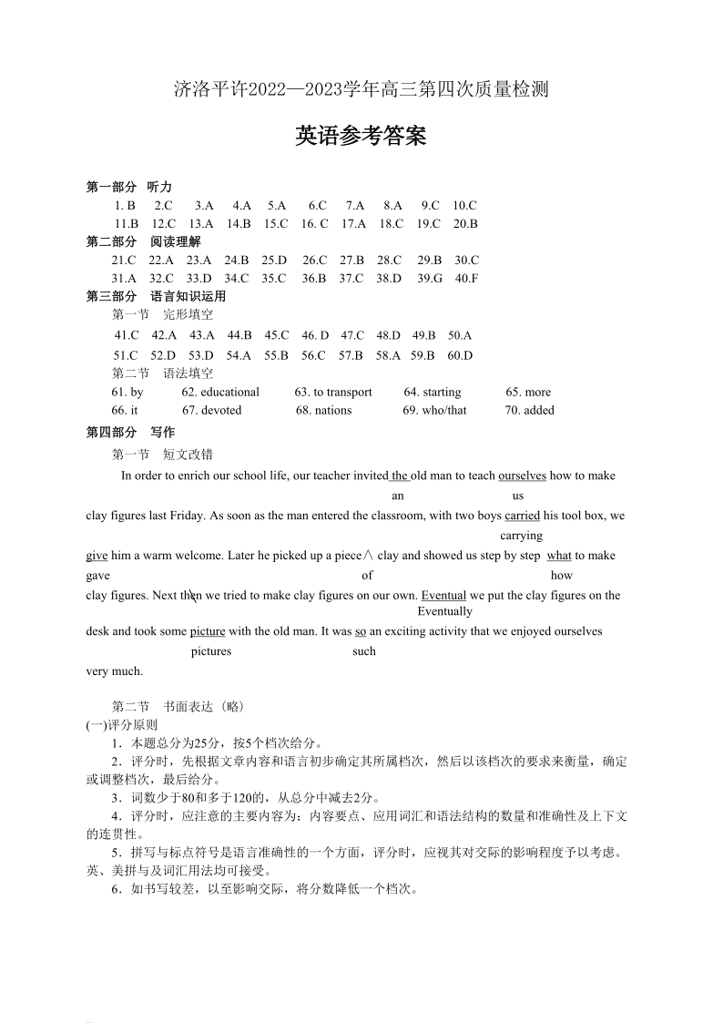 高三英语答案----河南省济洛平许2023届高三第四次质量检测