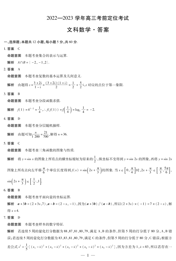 高三文数答案--河南省许平汝名校2023届高三考前定位考试