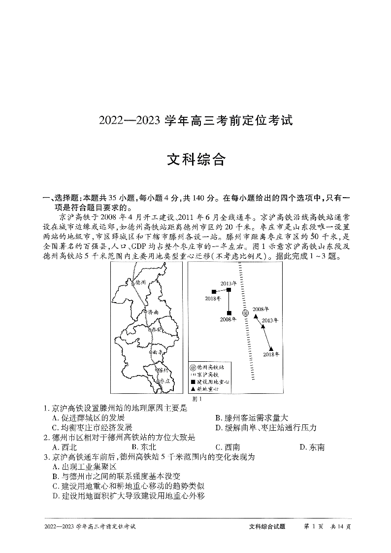高三文综--河南省许平汝名校2023届高三考前定位考试