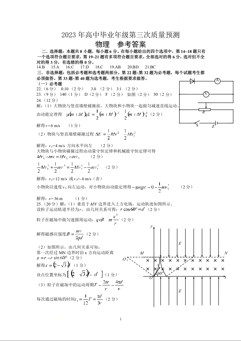 高三物理答案--河南省郑州市2023届高三第三次质量预测