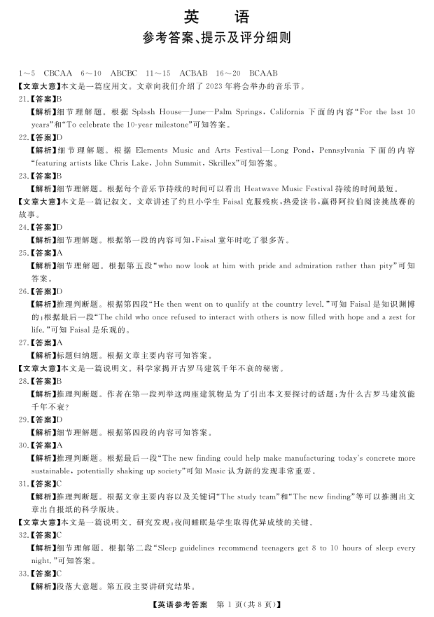 高三英语答案--黑龙江齐齐哈尔市2023届高三三模