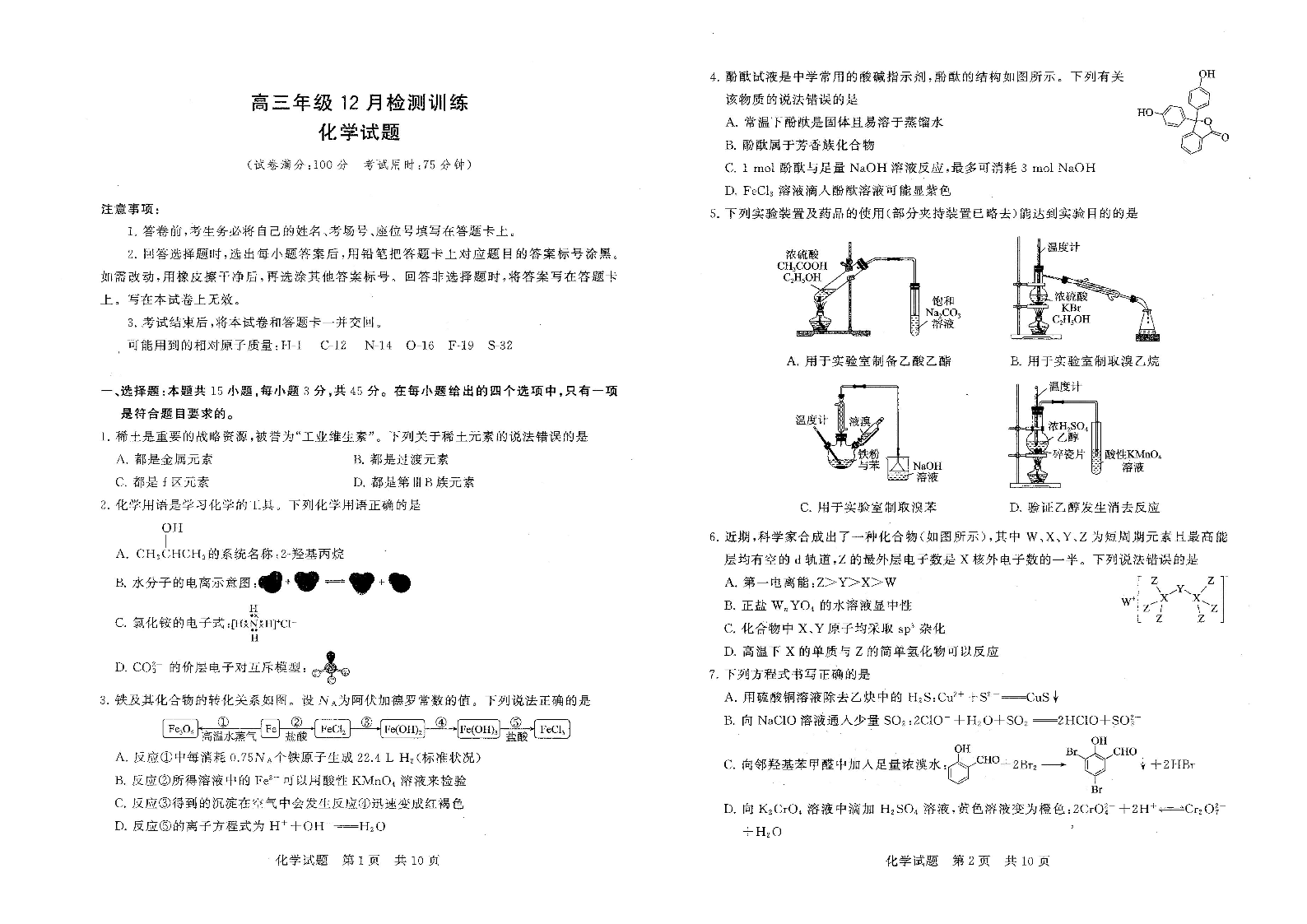 高三化学--湖北省2026届高三年级12月检测训练(T8联考)