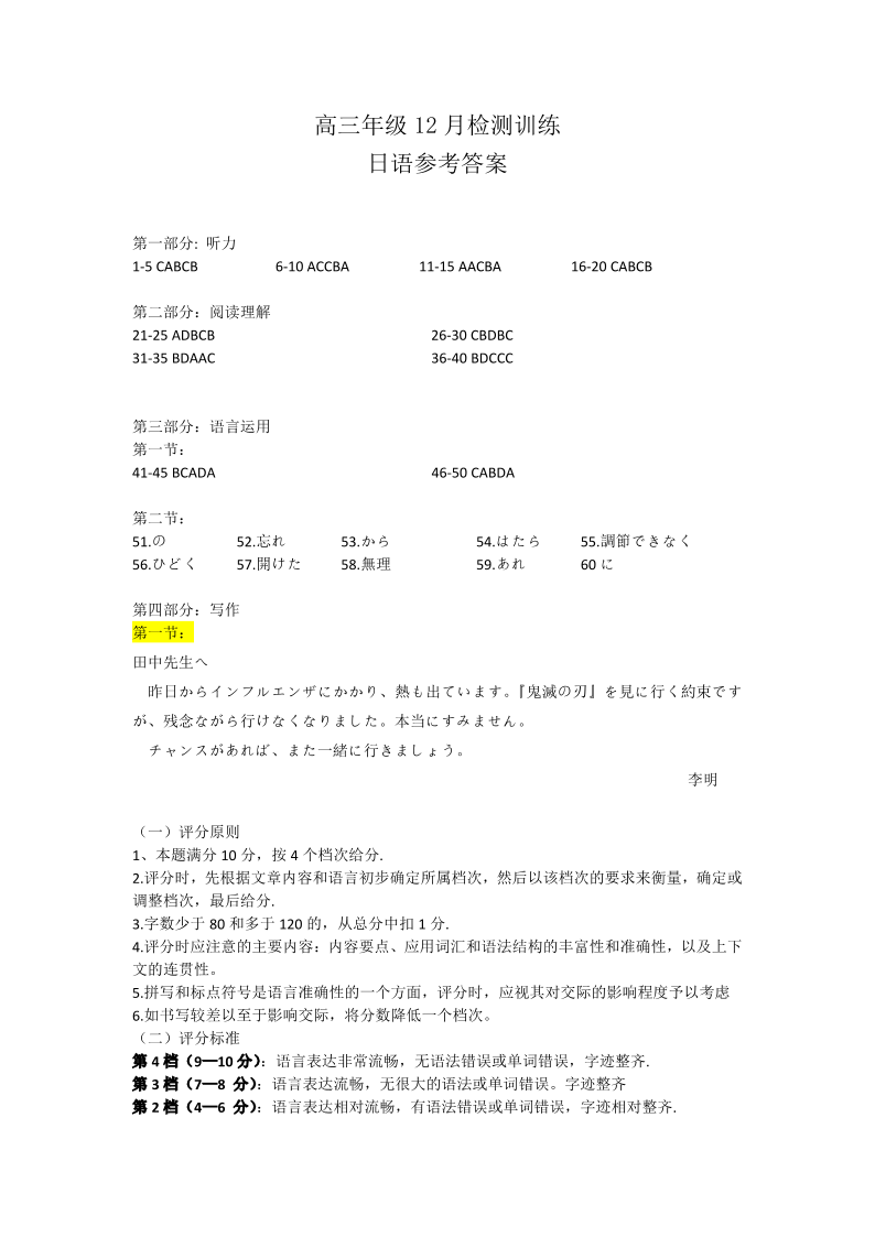 高三日语答案--湖北省2026届高三年级12月检测训练(T8联考)