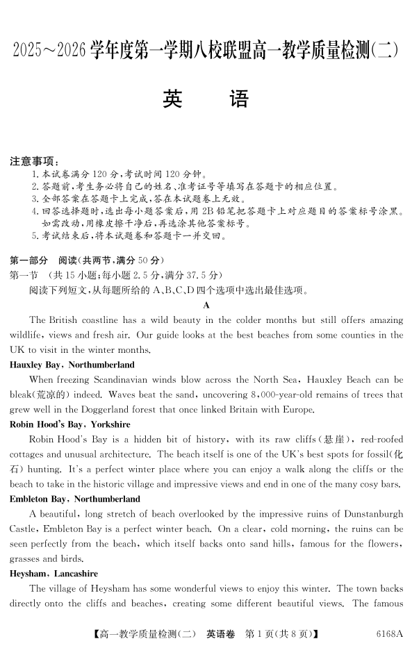 高一英语--广东省纵千文化2025~2026学年度第一学期八校联盟高一教学质量检测(二)