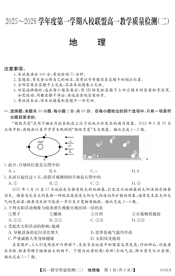 高一地理--广东省纵千文化2025~2026学年度第一学期八校联盟高一教学质量检测(二)