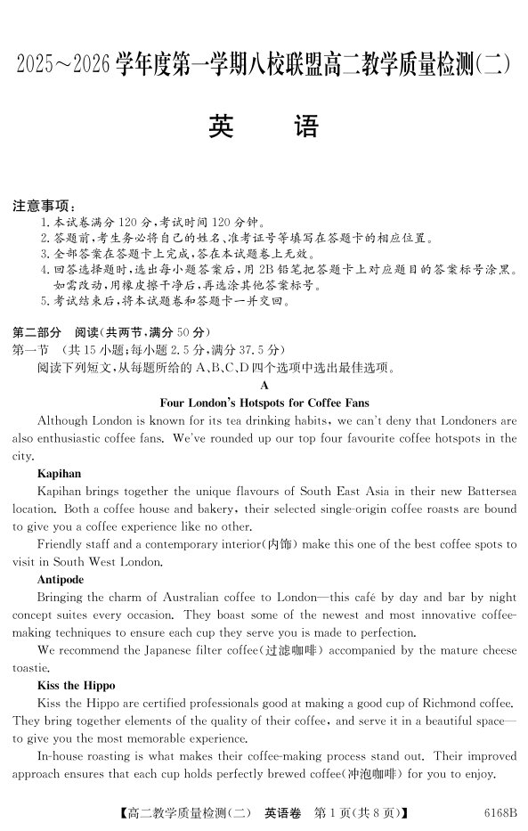 高二英语--广东省纵千文化2025~2026学年度第一学期八校联盟高二教学质量检测(二)