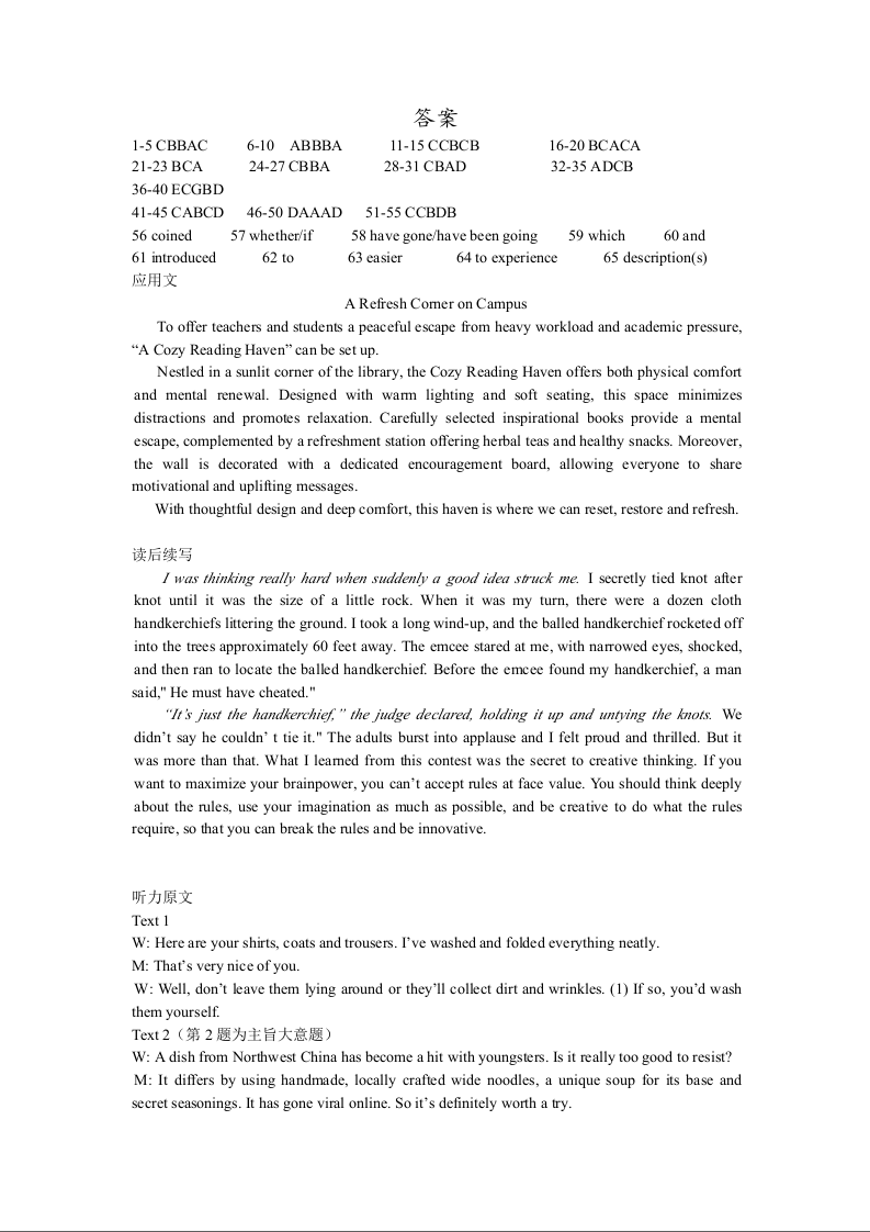 高二英语答案--浙江省余姚中学2025-2026学年高二上学期12月月考