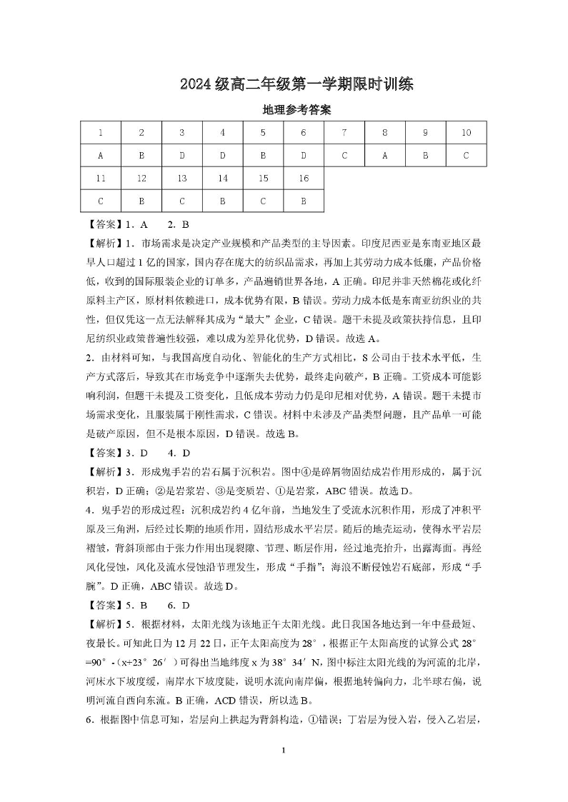 高二地理答案--湖南省长沙市南雅、雅礼实验中学等五校联考2025-2026学年高二上学期12月限时训练
