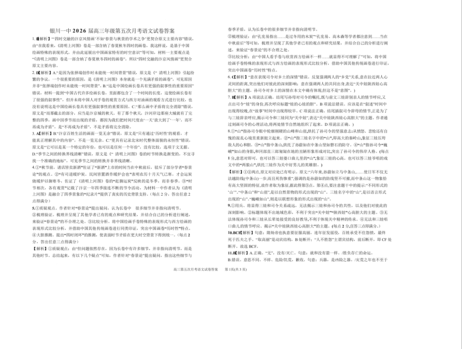 高三语文答案---宁夏银川一中2026届高三上学期第五次月考(12月)